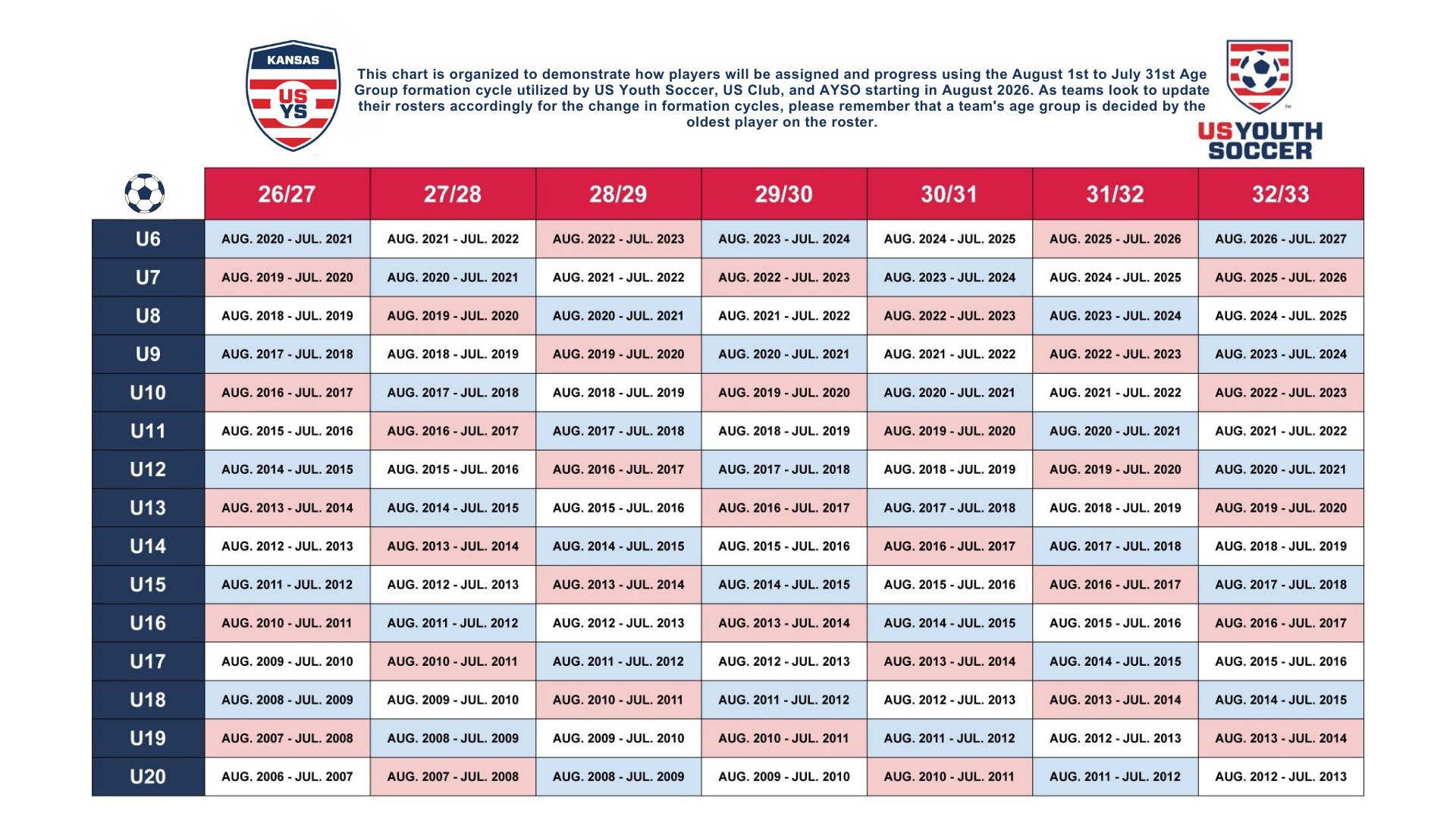Following extensive review and discussion, US Youth Soccer, AYSO, and US Club Soccer have all made a collective decision. They will move to an age group player formation cycle that runs from August 1 to July 31. This change will start with the 2026/27 season/registration year. This change was based on additional critical feedback. It was also influenced by data and expert input. The goal is to better align players with their school-grade peers.