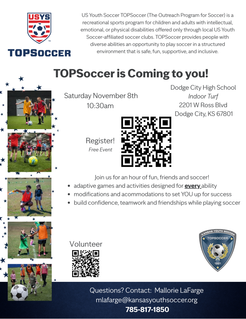 Mallorie LaFarge TopSoccer KANSAS YOUTH SOCCER mlafarge@kansasyouthsoccer.org |
